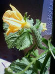 黄色い花が咲いてて、その根元に小さいキュウリが出来てる~♪