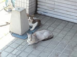外に出たら、猫が二匹寛いでて、鋭い眼光(笑)