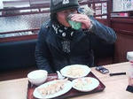 餃子定食を前に、ちょっと嬉しそうなサック兄さん。