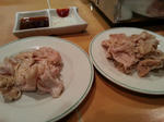 新メニューの、若鶏皮(左)と豚の大腸(右)