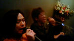 写真は、餃子とビリージョエルの【HONESTY】を歌うM川さん&旦那。