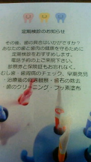 さて、歯医者より【定期検診】のお知らせが届きました。
