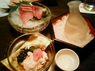 ブリのお刺身とダダミと日本酒で幸せ~♪