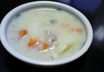 昨日の夕飯の残りのシチューを食べました。