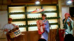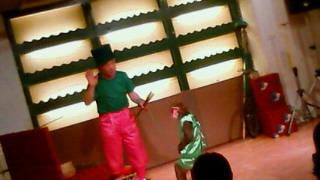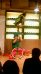 代わりに、猿回しのお父さんが一輪車に挑戦。