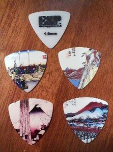 いつも使ってるのは、ESPかDUNLOPのオニギリ型ピック1mm。