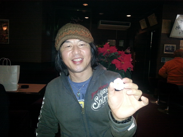 サンタの砂糖菓子片手に嬉しそうな兄さんです(笑)