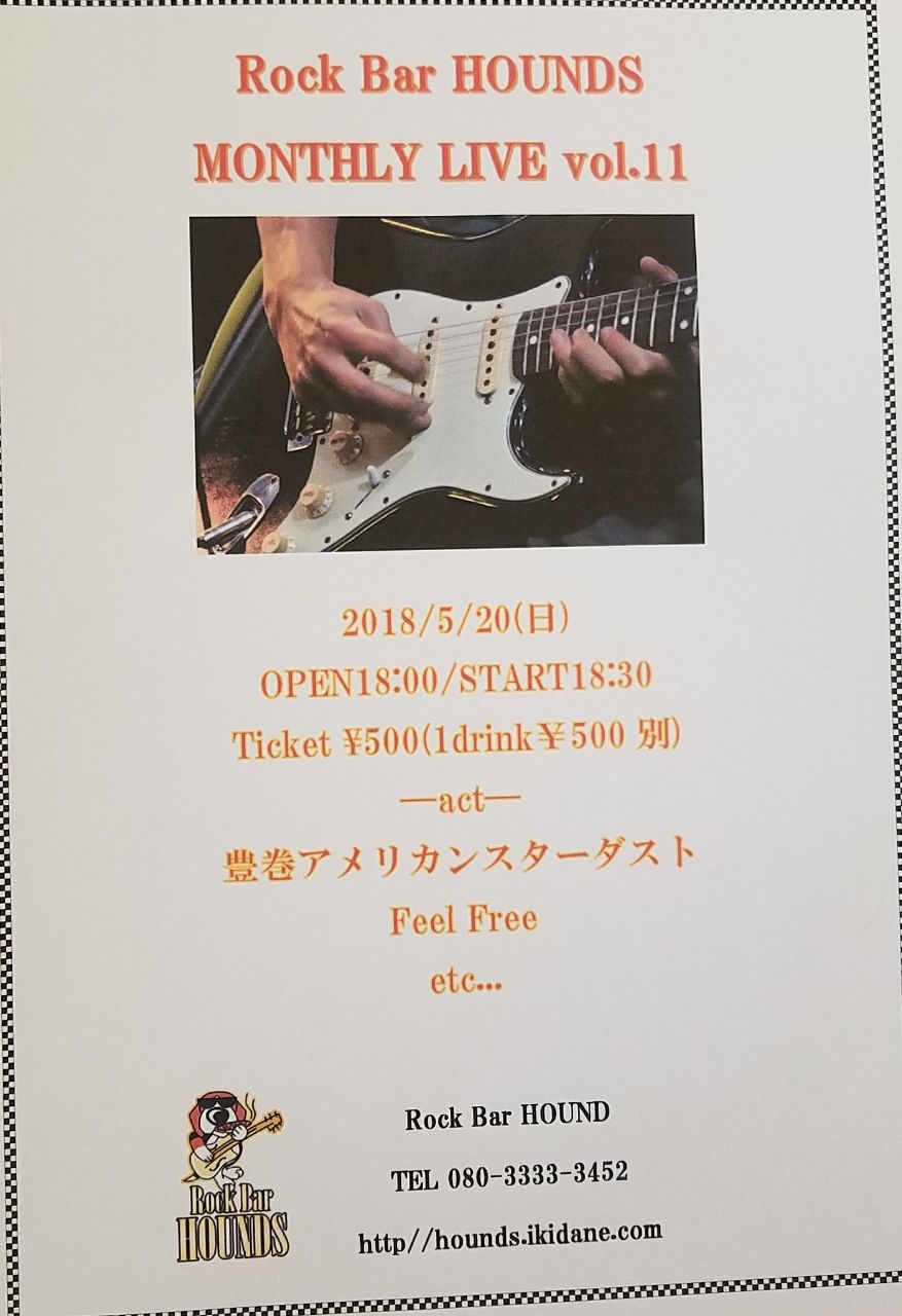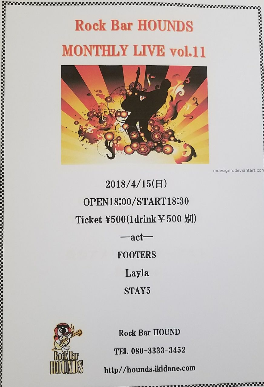 ロックバー ハウンズのライブスケジュール、4月~6月分です。