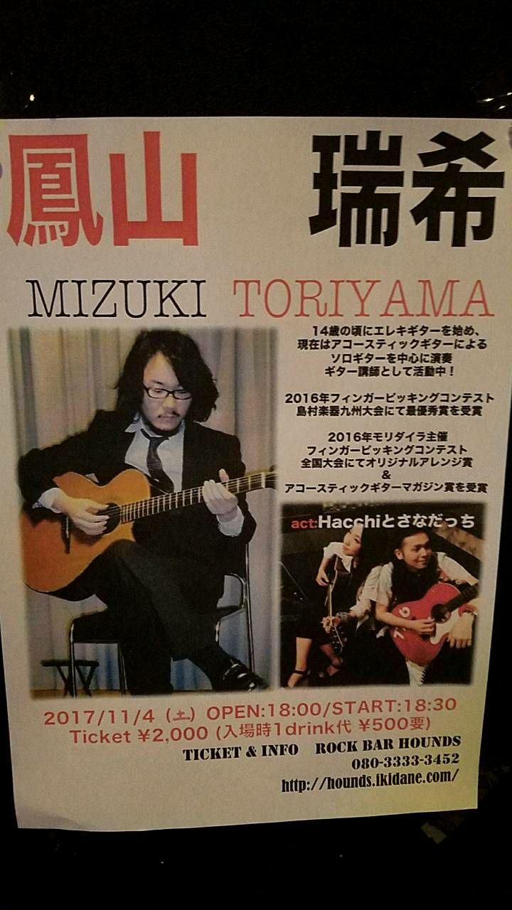 11/4(土)、鳳山瑞希さんのアコースティックライブがあります。