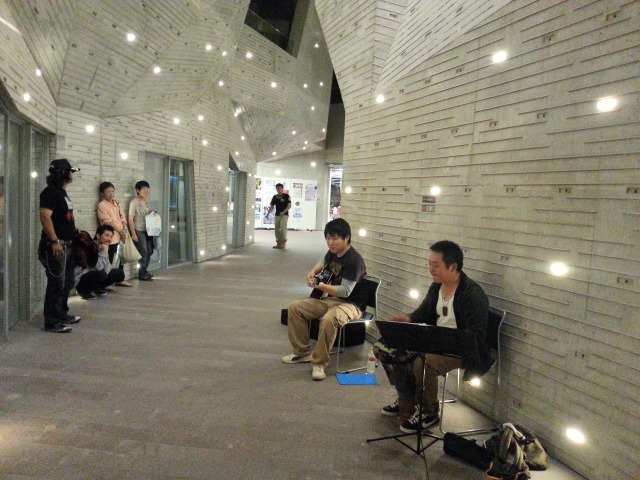 日曜日の夕方、わいわいストリートでアコギ演奏。