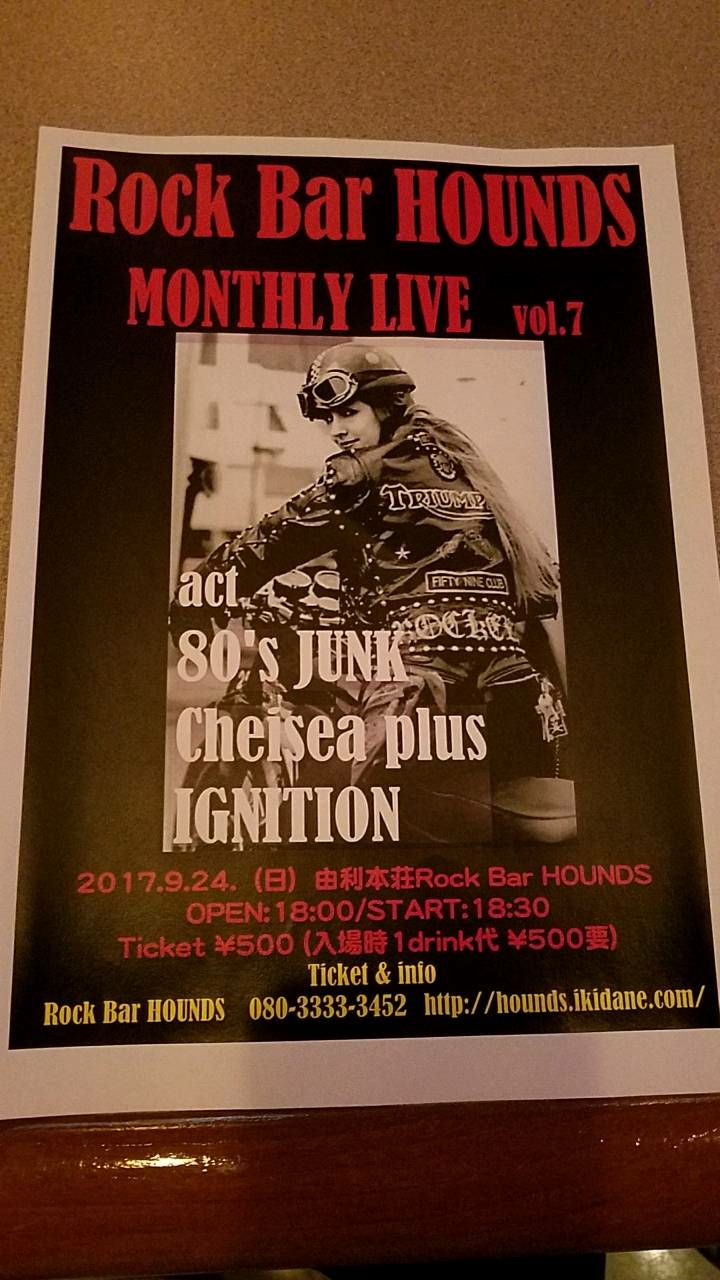今週の9/24(日)、ハウンズマンスリーライブがあります!