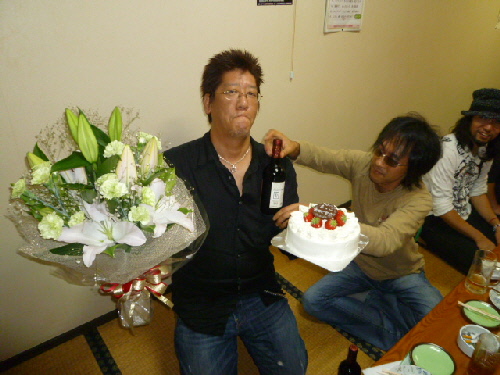 打ち上げで、誕生日をお祝いして貰った旦那(笑)