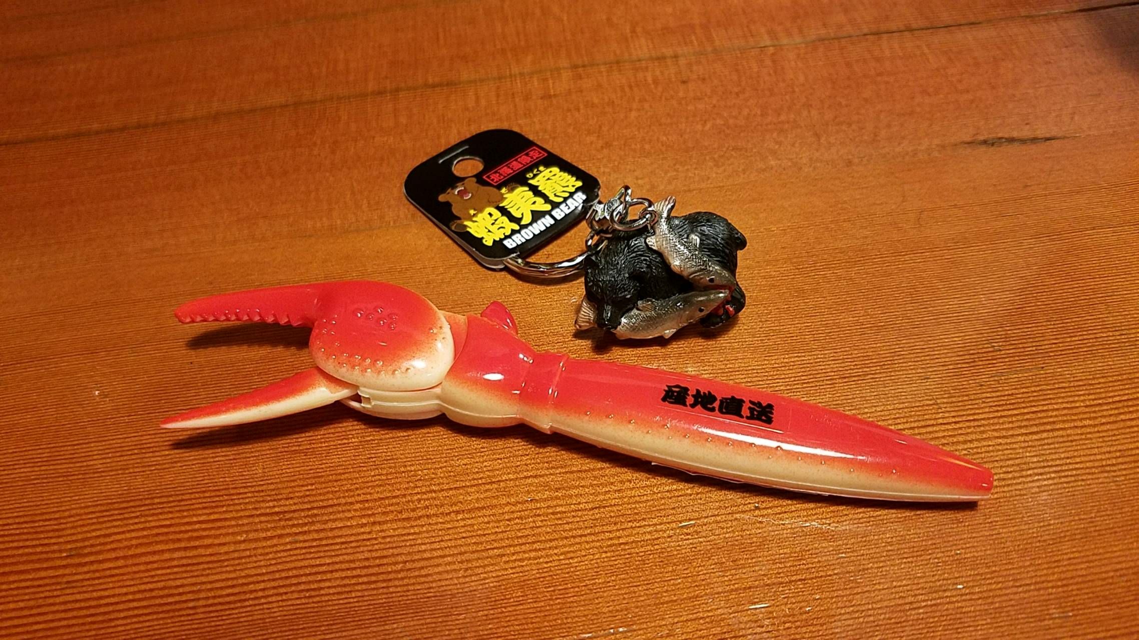 カニ足のペンと羆のキーホルダー(笑)