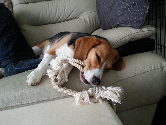 オモチャくわえたまま寝ちゃいましたよ(笑)