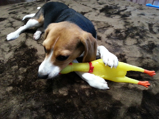 ただ、お腹を押すと変な鳴き声がして、すごくウルサイ(^_^;)