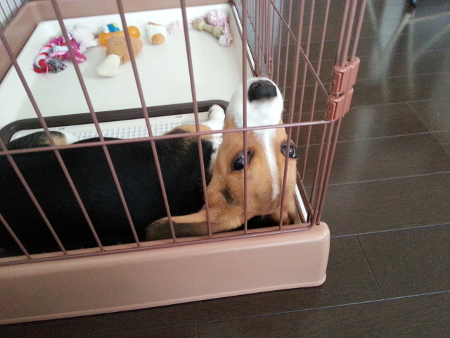 ゲージに入れれば良いのですが、出してと大騒ぎ。