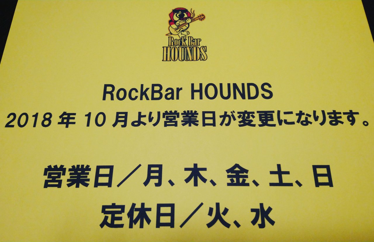 ロックバーハウンズ、平日も営業する事になりました!